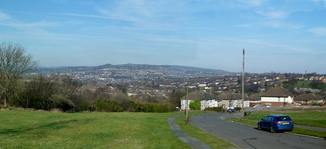 [2] Exit the woods at an A-frame and go straight on up the walkway opposite. Turn left at the A-frame half way up and enter Busk Meadow Park (D). Go straight on to the wetland area with its dragonfly sculptures and turn left through an A-frame. Turn left on Shirecliffe Road, right along Longley Avenue West and left into Musgrave Place. Turn left at the signpost by the barrier onto Parkwood Springs. Go straight on along the wide path and bear left. Pass through the A-frame and continue alongside the railings. Bear left with the path then right along a natural path following a wooden fence. Continue along the edge beyond the houses, soon to reach the viewing platform (E). Continue along the edge and turn right at the junction. Pass the terminus of the ski lift and turn right at the junction. The path curves left to a wonderful viewpoint over the city centre. Here turn right and follow the metal posts towards the ski slope and then steeply down alongside it (care needed). Ignore the steep run-off to your left and continue a few more yards before curving left to the wide path below to finish the descent. Turn left along the tarmac to the exit and continue down the road.