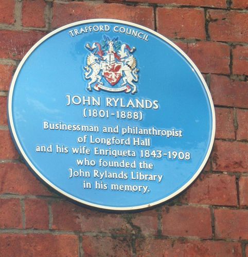(C) This used to be the entrance to Longford Hall, the home of John Rylands. John Rylands made a vast amount of money out of textiles; he was Manchester’s first millionaire, and his widow organised the building in Manchester of a memorial library to house a large collection of very valuable books. She also left the hall and park to Stretford Council, who neglected the hall and eventually pulled it down, just keeping the portico.
