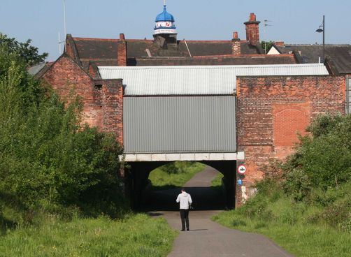 [1] Come out of the Library and turn left and immediately left again into Ratcliffe Street. Walk to the end of the street and in front of the old Atlas Works with the large Mobil signs turn right and cross Chapel Street and go left into Gordon Avenue. Walk down Gordon Avenue to the end. You will notice the houses in the side roads gradually get bigger. At the end of Gordon Avenue you come out into Crayfield Road. This used to be called Station Road. Cross Crayfield Road and go onto the urban cycle track and walk away.