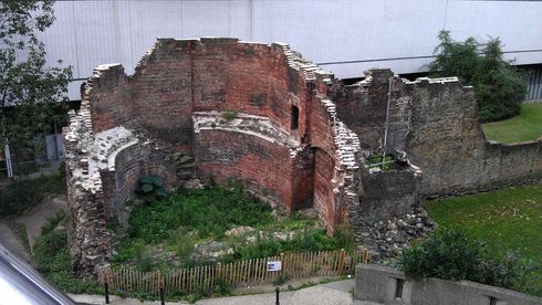 As you are walking along St Alphage Highwalk, you will find Michael Ayrton’s sculpture, The Minotaur, on your right, and remaining tower of the St Alphage church on your left. At various points you will see the remnants of the London wall which was built by the Romans in the late 2nd / early 3rd century.
