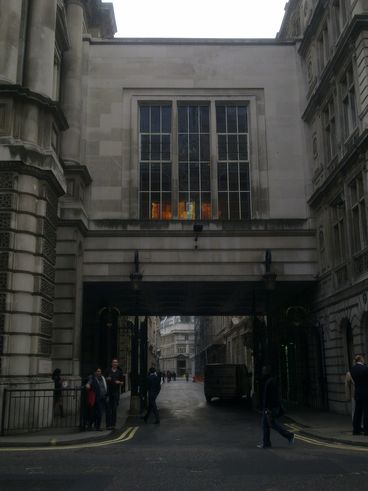 Walk under the arch in Throgmorton Avenue