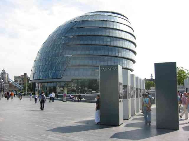 (B) The City Hall building was opened in 2002 and designed by famous architect Sir Norman Foster. There is a walkway that runs the whole height of the building, where visitors can see all the interior spaces – aiming to promote ‘transparency’ at the home of the Greater London Authority.
