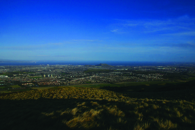 The extensive views reach along the East Lothian coastline to North Berwick Law.
