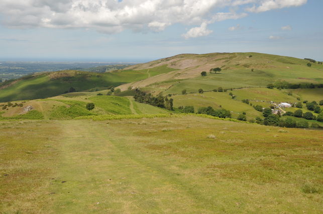 This shapely range of hills is often seen but infrequently visited. All most people know of these upwellings at the edge of North Wales is their shadowy horizon along the busy A55 expressway, which funnels ramblers to the familiar stomping grounds of Snowdonia. Spare a little time to explore these rounded summits however, and you’ll soon discover why they were granted AONB (Area of Outstanding Natural Beauty) status in 1985. It’s the Bronze Age heritage, stunning views, comforting landscapes and almost guaranteed tranquility that make instant fans of those lucky enough to venture off the beaten track here. Offa’s Dyke Path strings along the crest, linking iron-age hill forts dating back into the mists of time, and this walk explores such timeless countryside at the heart of the range.