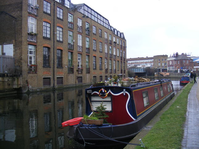 Kingsland Basin, some 240 yards long dates from 1822. The charity CHUG founded in 1983 manages the moorings and claims to be 'the country's only independently run community marina, providing sustainable affordable moorings in central London. 'With ten ducks too.' It also has an allotment barge.