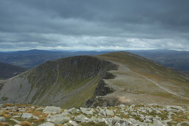 Bear right to pick up a steep path, which climbs the short distance to the top of Meikle Pap (NO260860) and further amazing views of Lochnagar.