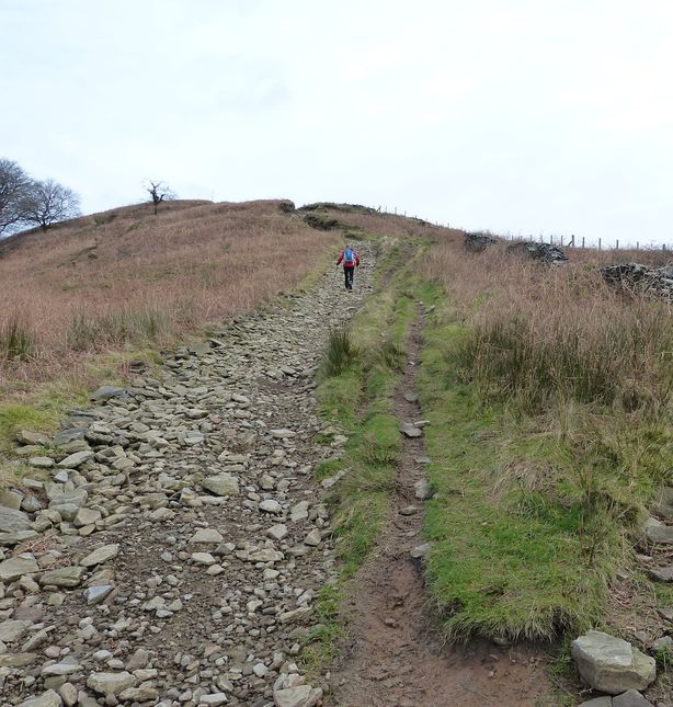 Now continue on, and as the track bears right towards the masts look left to the two hills across the valley.