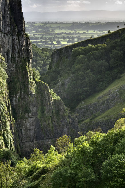 • Cheddar Gorge, with the Somerset Levels visible in the distance