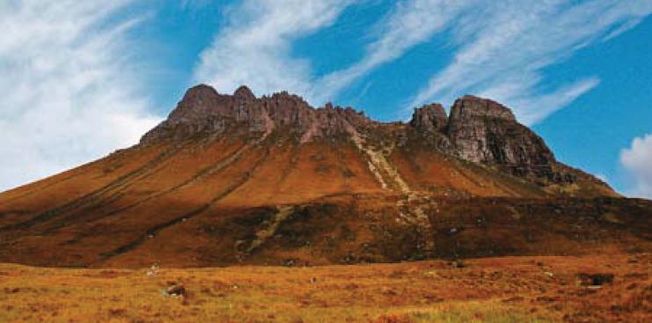 • Cul Mor, one of the gaints of the Inverpolly Forest, dominates the view north from Stac Pollaidh