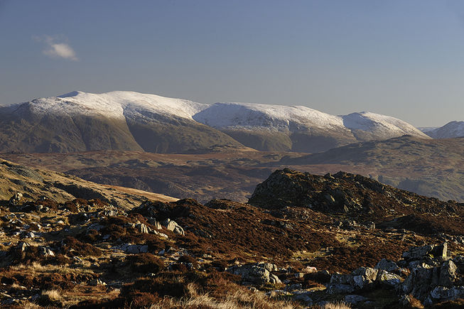 (F) When you reach the large cairn markings for the descent back to Buttermere, a short detour into the heather south of the summit crags gives you a peek into Ennerdale, one of the Lakes’ most remote valleys. The only building visible for miles is the white-washed croft of Black Sail Youth Hostel, used by walkers as a base camp for explorations of the mighty wall of mountains ringing the head of the valley, culminating in the bell top of Great Gable.