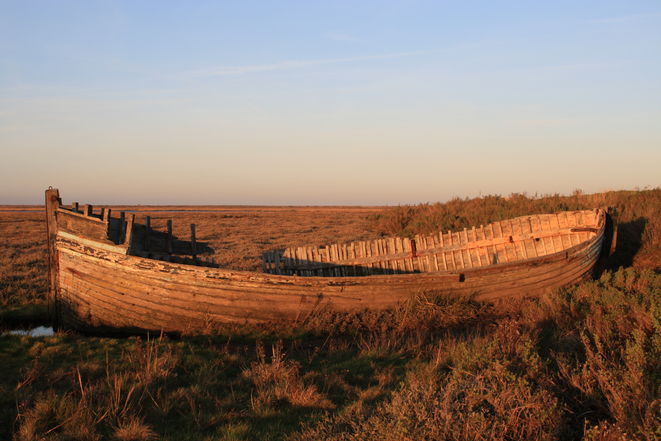 The first half of this route is, strictly speaking, a coastal walk. All the ingredients are here: quays, jetties, boats and general maritime gear, but you will barely glimpse the sea. Instead this section of the Peddars Way and Norfolk Coast Path navigates a course along the top of the sea defences, through the wide saltmarshes and creeks left behind when the sea turned its back on this once prosperous port over a hundred years ago.