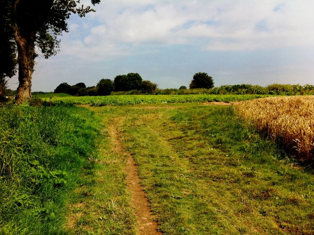 [5] Turn right and follow the lane past several cottages and a very old orchard. The lane turns sharply left and then right before reaching the lych gated entrance to St Michaels churchyard. Go through the gate, head across the churchyard and go out through a gate in the far wall into a field.