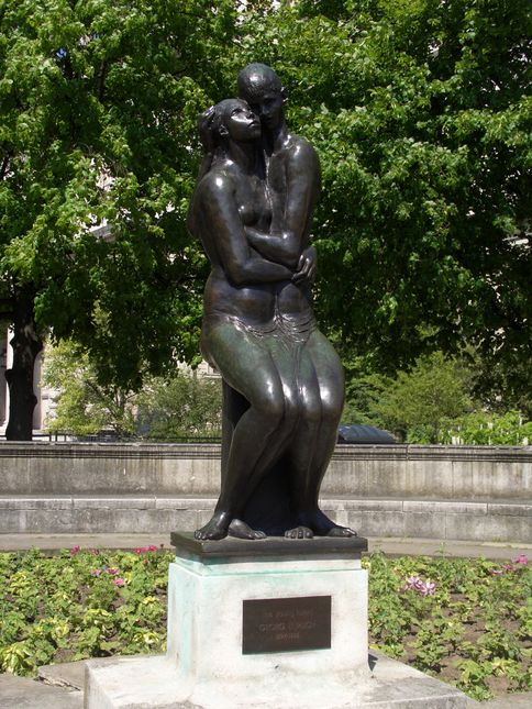 (I) 'Young Lovers' is one of George Ehrlick's more well known works and represents peace and love amongst the hustle and bustle of city life.