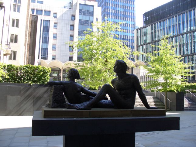 (K) 'Becket' by Bainbridge Copnall (1903-1973). Considered by many as one of Copnall’s best works, the statue was acquired by the Corporation of London in 1973. Copnall captures and freezes in time the death throws of Thomas a Becket, murdered in a brutal fashion in Canterbury Cathedral in 1170.