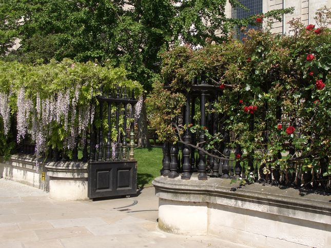 (J) St. Paul's Cathedral Garden is part of the precincts of St Paul's and provides valuable open space for public use. The garden was laid out in 1879 by Edward Milner, designer of private gardens and public parks. It includes winding footpaths, fountains, sculpture and seating, and features lawns and mature trees and shrubs, as well as a lovely rose garden. The restored 1714 churchyard railings are important early examples of cast iron work.
