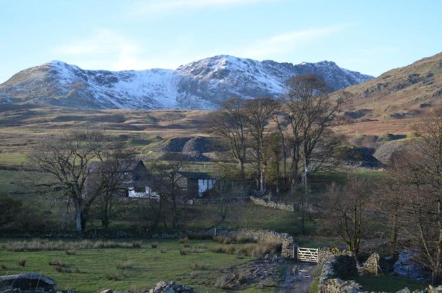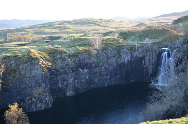 [3] Walk up the lane, passing turnings to right and left, following the sign to "Tranearth" past Scar Head cottages. This way is mainly uphill passing to the right of a barn and then bearing right following the sign to "Walna Scar" over a mainly level section towards the buildings of Tranearth and the old quarry.  Go through a gate, bear right, pass through a second gate and out by a third gate to cross the bridge.  Turn left between the quarry spoils: this path turns to the right and climbs alongside a water channel. The path skirts a huge quarry hole, in one corner of which is a large waterfall.