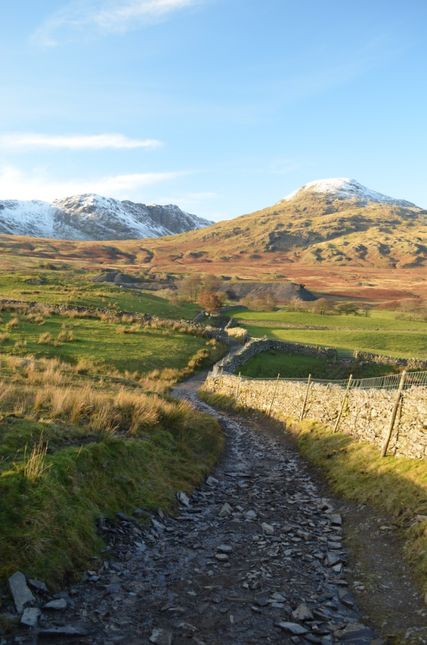 Alternatively, bear right off the Walna Scar Road along the paths to Heathwaite and down into Hawkshead.  This avoids the last tarmac mile of the Walna Scar Road which can be busy with cars.