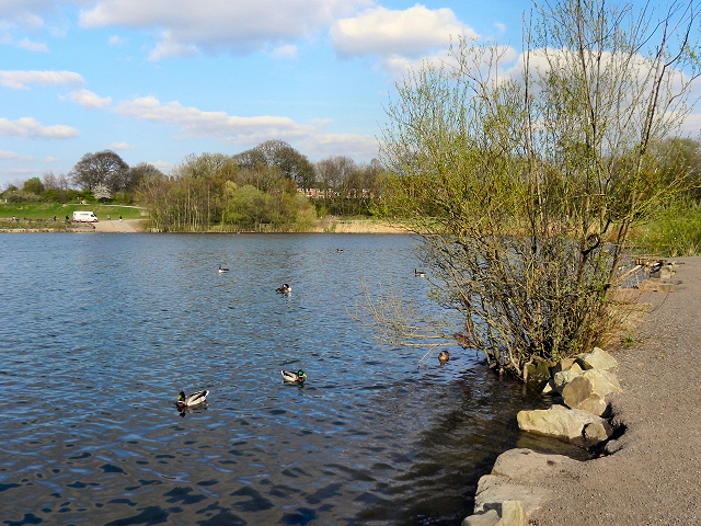 When you leave the Lakeside Centre, continue on to the top of the lake, then turn right and very soon sharp left. You will see a tree lined path leading to the edge of the park with the old training ground for Manchester City FC on your left. Follow this path out of the park onto Platt Lane. Turn left, cross over and then turn right to go up Heald Place. Follow this very long, straight road until it ends on Moss Lane East opposite a gate into Whitworth Park.