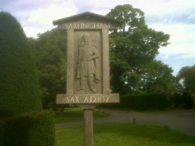 (C) Saxlingham St Mary Magdelene ruined church pass through the church to a path to the end of woods turn right along track to finger post to the left follow field edge to plank bridge cross follow path to the side of school at road turn right then left into hall lane were you will pick up waymarkers for Boudicca’s Way — note the yellow waymark bearing a sword, passing a finger post to your left take the path to right along field edge to a track at road turn left (Saxlingham Green) using the very wide verges where possible to another Boudicca’s Way waymark on the left.