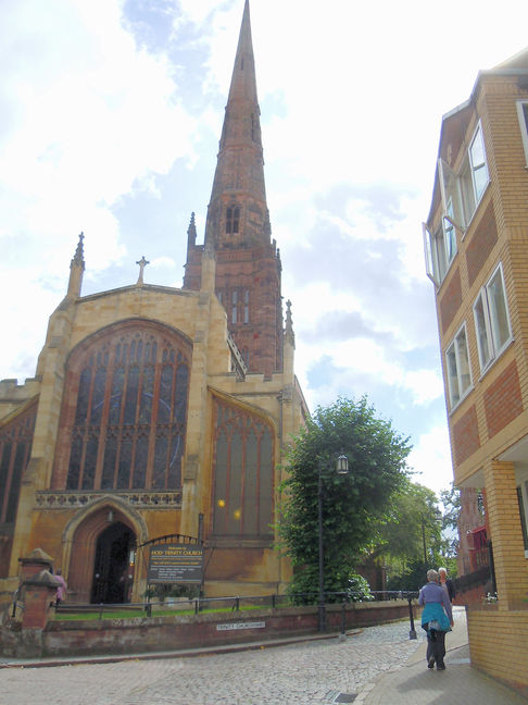 [3] From the Coventry Transport Museum, walk across Millennium Place, with its Time Zone feature on the pavement, towards the statue of Sir Frank Whittle (towards Hales Street and the Pool Meadow Bus Station), and cross over the road with great care*, to Sainsburys supermarket. Continue up Trinity Street and enter into the Pedestrian Zone and continue until you reach Holy Trinity Church.