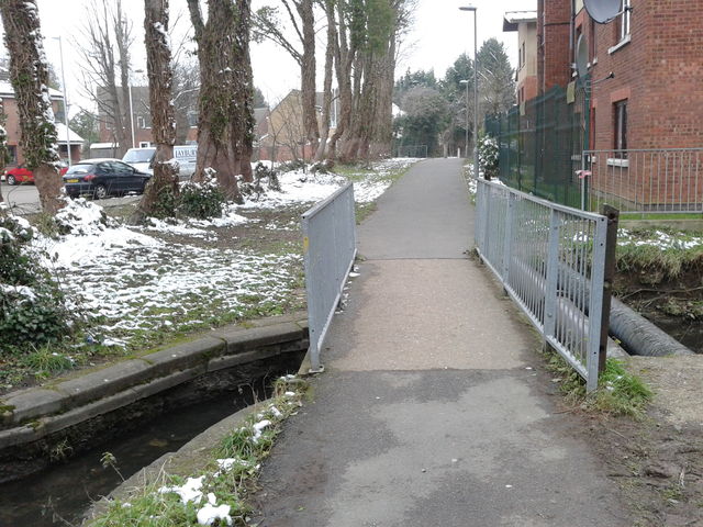 [12] At The Hedgerow, turn right and then right again, keeping to the pavement as you cross over the stream once again. Continue along the pavement to the right side of the roads to the junction of Vincent Road and Nappsbury Road.