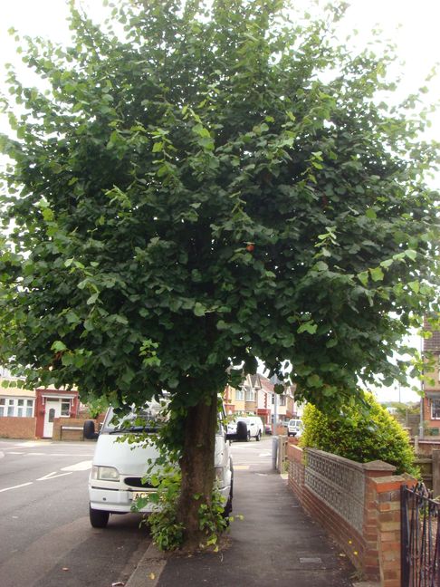 [4] Cross Solway Road South carefully and turn left. Most of the gardens here as used to park cars, but there are some interesting ones. Just before the junction with Alder Crescent there is a lime tree in the pavement.