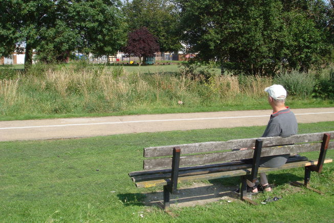 [5] Nunnery Lane now joins Bancroft Road at the end of the allotments. Cross over Bancroft Road with care, at the pedestrian crossing. Take the path opposite you that runs along the side of the River Lea. There is a seat very soon, where you can take a break and enjoy the view.You will see some houses to your left. These are in Fenwick Close. Follow the path for a short way until you see a road on your left, which meets Fenwick Close by a group of 7 trees. This is Aldhous Close.
