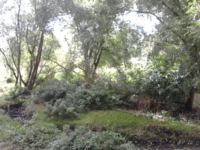 [3] Turn right over a level bridge that goes over an area of the stream that is sometimes wide. In 2012 it has been dry and has many flowering plants attracting butterflies and other wildlife.