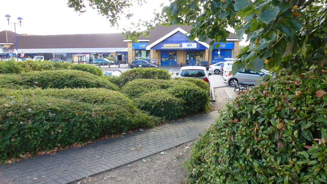 [1] Leave Lister house turning right and then immediately right along Southern Way. Just past the railings on the right look for a gap in the hedge leading into the shopping centre car park.