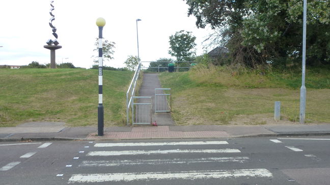 (A) There is a short path by the zebra crossing which leads up to a sculpture 'Echo'
