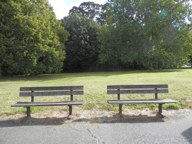 [2] Cross carefully over Hamstel Road and turn left to walk along the right hand pavement of Hamstel Road, leaving the seat on your right and following the open green area until you come to the junction with Hodings Road. Here you will see two benches on the corner. An RAF spy used to pass secrets to his KGB handler here.
