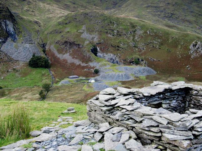 Alternatively, from the dam, climb the slope ahead by way of a grassy rake which tends to the right. This is not a path, but it serves as a useful link to the main Nan Bield track, which meets the route to right of the rocky knoll as seen from the dam. Turn right at the junction and follow the path, which becomes less distinct, for a very short way over wetter ground. The path becomes more obvious as it drops down to a wall, a gate in the corner of which leads to a stream crossing. This path is followed to Overend Farm.