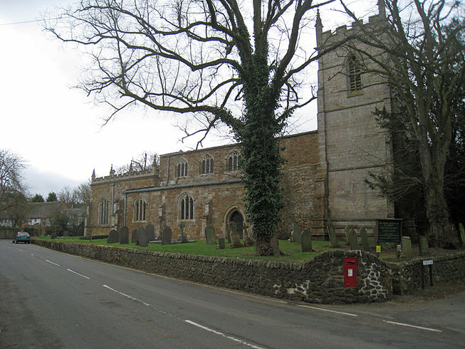 [13] Continue along Main Street, passing Grant's Free House on the right and the Old Rectory on the left. Soon afterwards, on the left, is the Church of St Mary the Virgin. A seat in the churchyard helps to make it a pleasant place to take a break. Continue along the road and leave the village, ignoring a path sloping down to the left. The road becomes Somerby Road. Take care here - there is traffic but no proper footpath!