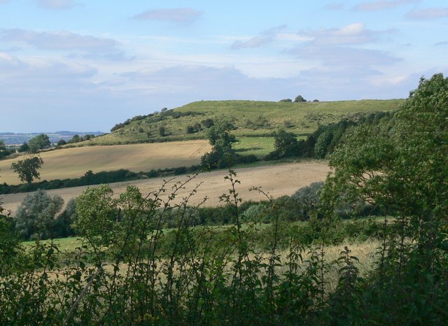 [15] The path reaches a concrete road running left-right. Straight ahead are markers for the Leicestershire Round. Do not follow them. Instead, turn left along the concrete road. This is also the Leicestershire Round. Soon you will reach the entrance to Burrough Hill, a well-preserved Iron Age fort. You may wish to take a circular detour around this site. If not (or after the detour), continue along the Leicestershire Round, passing to the south of the fort ramparts. Follow the clear signs for the Leicestershire Round till you reach a road.