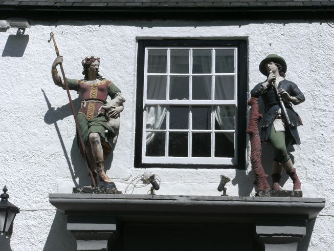 (C) The figures outside the Shepherd and Shepherdess pub date back to Napoleonic times and were part of a set used to smuggle lead for ammunition into the country.  A plaque beside the main entrance to the pub describes their history.