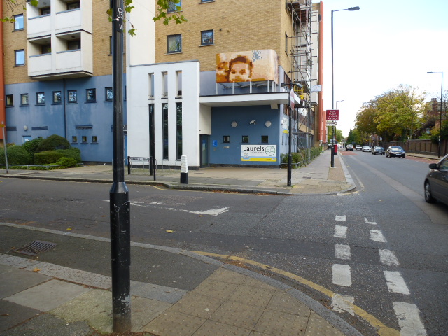 [1] Leave the Laurels (A) and turn left into St Ann's Rd, past the blocks of flats and a post box to the first turning on the left.
