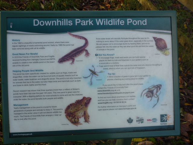 This is a small area of Downhills Park which is wooded and has a small pond.