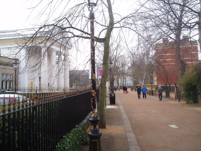 (A) New Walk, laid out in 1785 and known then as the Queen's Walk, follows the line of an old Roman route and now links the city centre with Victoria Park, the site of the old Leicester Racecourse. You will pass New Walk Museum and Art Gallery, many fine old buildings and the Holy Cross Priory Catholic Church.