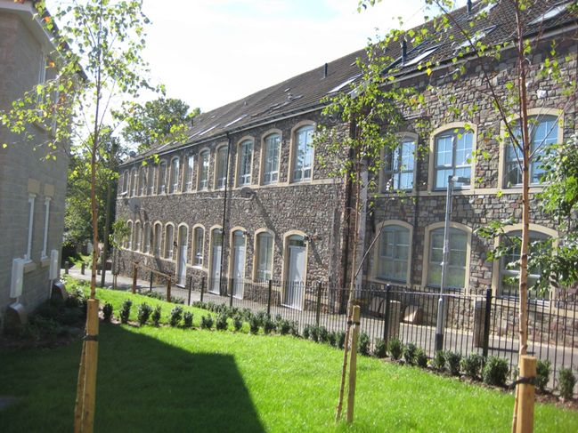[4] Turn right down Crown Hill, cross Plummers Hill and turn left. Cross Whitehall Ave and continue on Plummers Hill until you reach Hudds Vale Road. Turn right into a footpath on the righthand side of Hudds Vale Rd. You are now approaching a converted workhouse. Turn right at the end of the path passing between pebble dashed bollards. At the end of the path turn left in front of garages and follow the path back into St George Park.