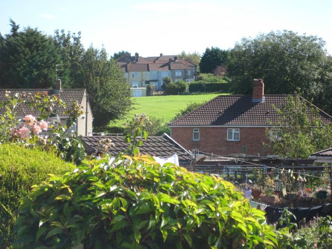 [3] Follow the tarmac path past well concealed allotments. When the path splits take the right fork. Take a moment to look around. You have only climbed a short distance but you already have a view. Walk a few yards further and you will see on your right in the distance, the Wills building at the top of Park St. Follow the path into Crown Hill.