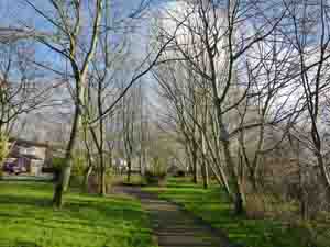 [8] Turn right onto Copeland Avenue and then after 20 metres take the tree-lined path on your right and continue forward, going right at the path junction to reach Brunel Avenue. Continue to the far end of Brunel Avenue.