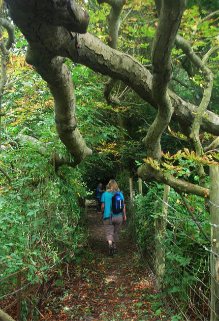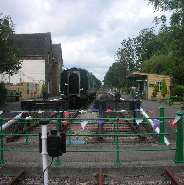 When train services are running there are trains from here at 15 and 45 minutes past the hour. So you can finish your walk here and take the train back to the start. It is unusual for people to board the train at Worth Halt so you will probably have the place to yourselves while waiting. You can see the train coming (slowly) from a long way off. Children may be delighted at the fantasy that the the train is coming just for them.