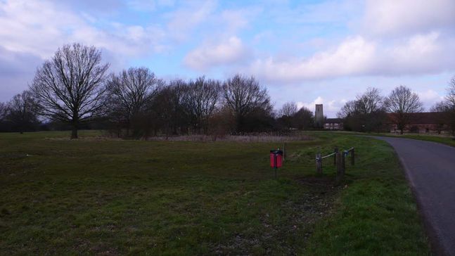 [2] The path meanders through a boggy area, over a footbridge, and turns left into a wood. Emerge from the wood onto a grassy field path and follow this, past a path to the left signed Ketts Country, to a kissing gate.