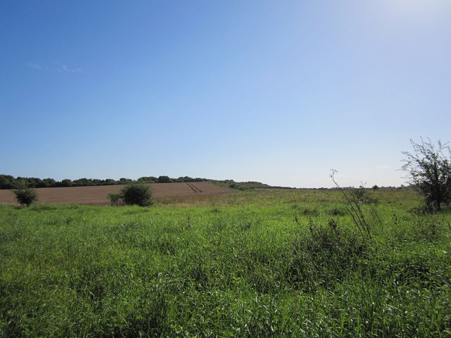 [5] Cross the road and bear left to walk up to a grassy footpath up on a small hill. Go over the stile and follow the grassy path as it goes along the hedge on your right. Follow this path for a distance.