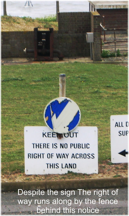 Southern Water's illegal sign. The right of way runs along the fence behind the sign