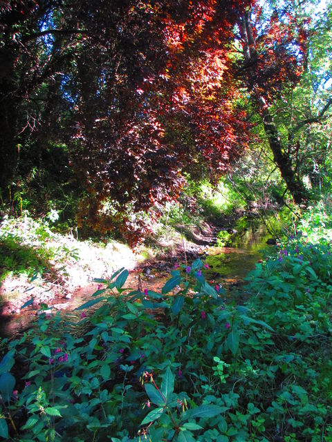 [9] Don’t cross the footbridge, but follow the way along with the beck on your right. Stay right when it forks out. At the end, you will reach the main road, cross over to return to the starting point.