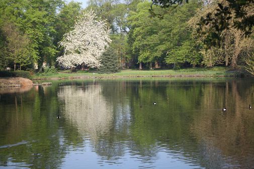 (B) The lake is home to many birds including Canada Geese, Coots, Moorhens and Mallards.