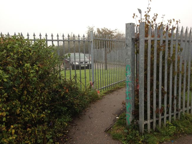 [6] Walk past the Green fenced area on your left and then Mike Spring Court.