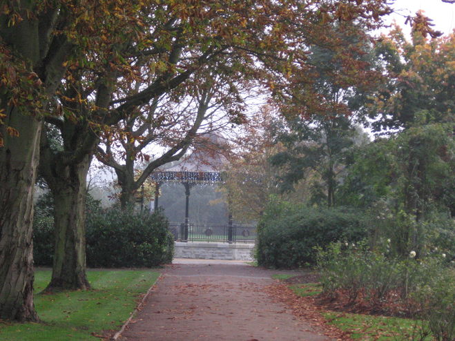 [4] Turn right and follow the tarmac path as it curves to the left, passing a variety of trees and the Bandstand on your left.