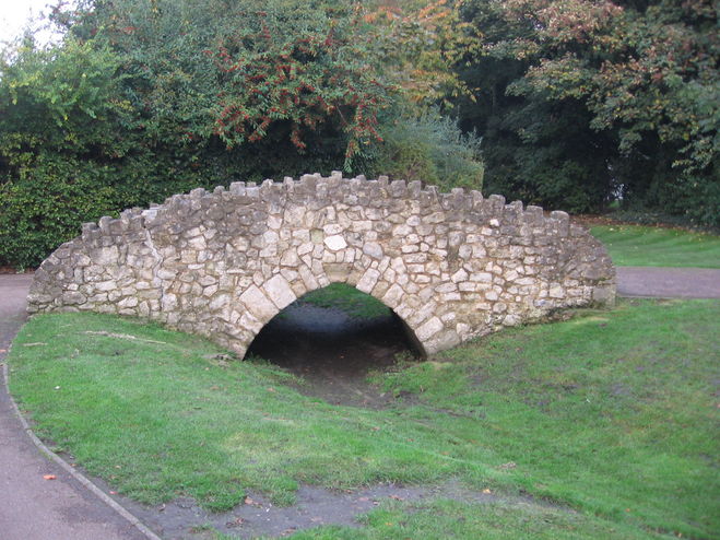 (G) The old bridge here is one of the stone arches from the original medieval town bridge which was rebuilt in 1923 over a stream which is now underground.